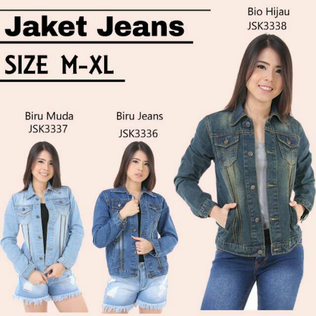 Jeans telah puluhan tahun menjadi andalan wanita di seluruh dunia seratnya yang kuat membuat bahan denim banyak diandalkan untuk berbagai bentuk busana hingga alas kaki. Belanja jaket jeans denim oversize hijau army wanita ukuran m xxl indonesia murah belanja jaket denim di lazada. Jaket jeans wanita ukuran xl berikut diikuti dengan dua pilihan ukuran lainnya yang lebih kecil yaitu m dan l.