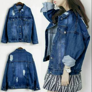 Jaket Jacket Jeans Levis Wanita Riped Rip Sobek Jumbo Big Size Xxl