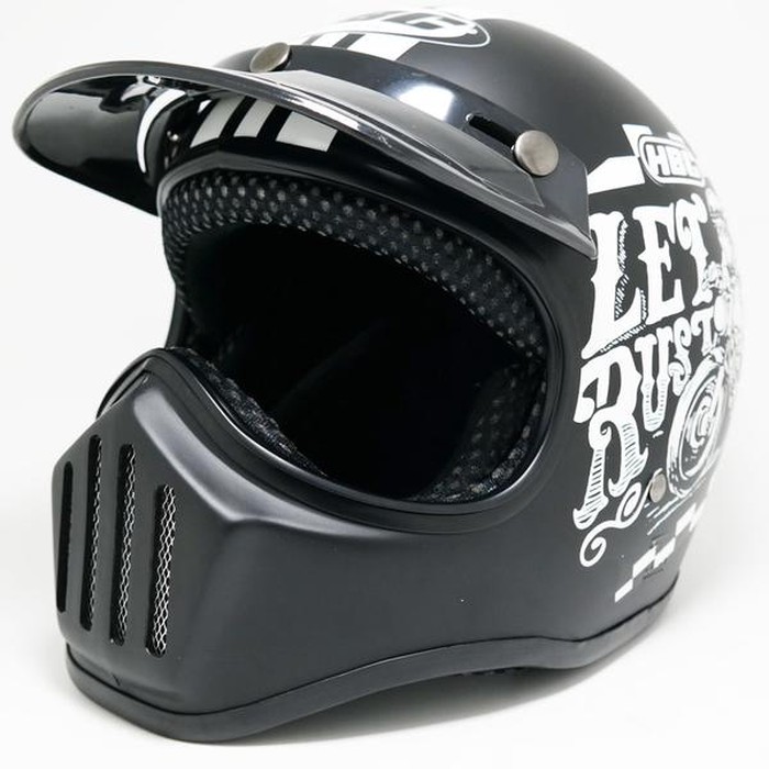 Helm Motor Hbc Cakil Rust Dust Black Doff Font White Hitam Putih Sni Size S
