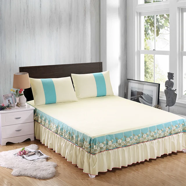 Us 38 34 46 Off Ivarose 3 Pcs Set Tempat Tidur Berwarna Warni Seprai Katun Tidur Rok Kasur Penutup Ukuran Queen King 19 Warna Dengan 2 Sarung Bantal