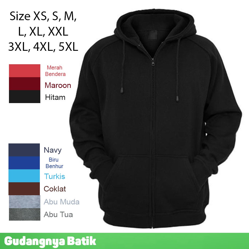 Jaket Hoodie Polos Big Size Ukuran S M L Xl Xxl Xxxl Xxxxl