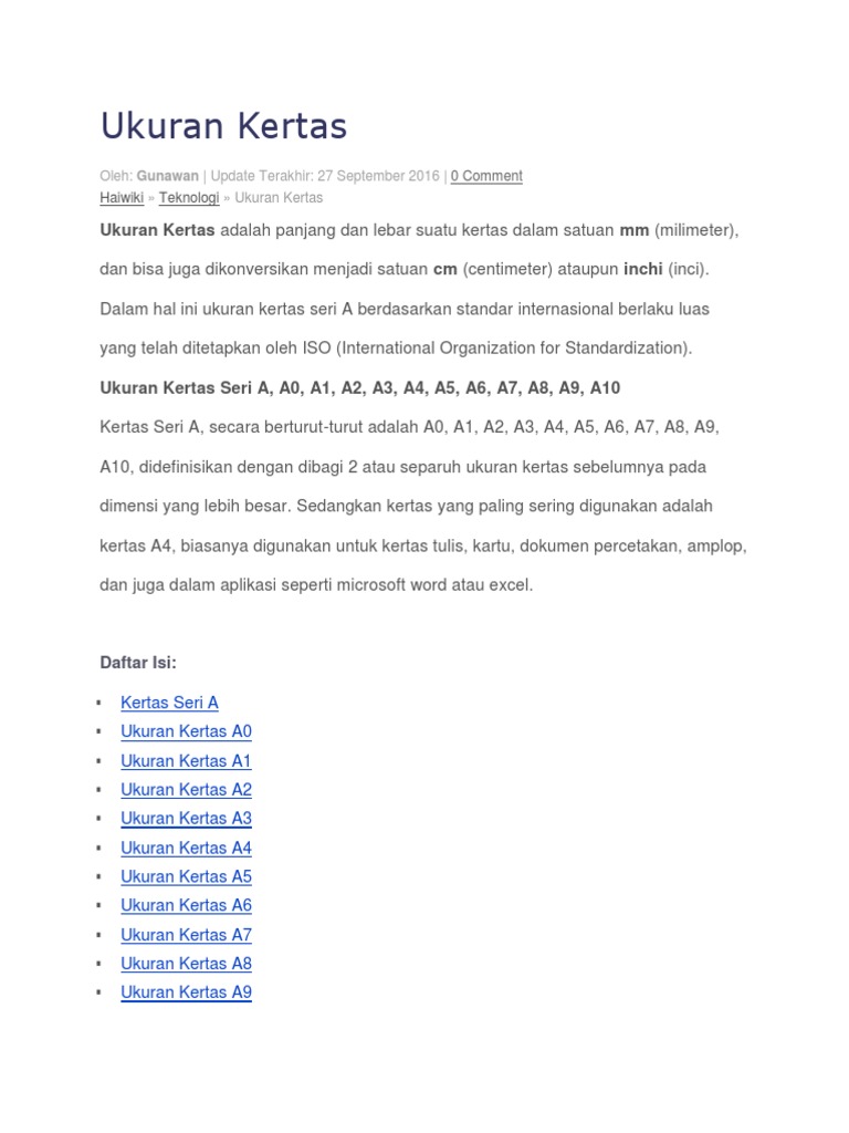 Ukuran Kertas Yang Secara Umum Di Pakai Dan Lebih Akrab Di