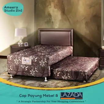 Bed Sorong Studio 2 In 1 120x200 Cm Set Lengkap Lengkap Kasur Atas Sorong Bawah Sandaran Ameera