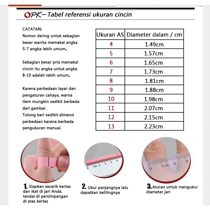 Jual Cara Menentukan Ukuran Cincin Tabel Ring Size Kota Surabaya Elok Nyentet Tokopedia