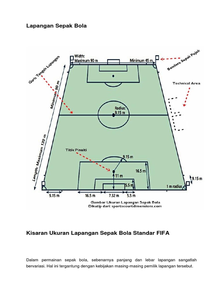 Ukuran Lapangan Sepak Bola Standar Fifa Dan Gambar Lengkap